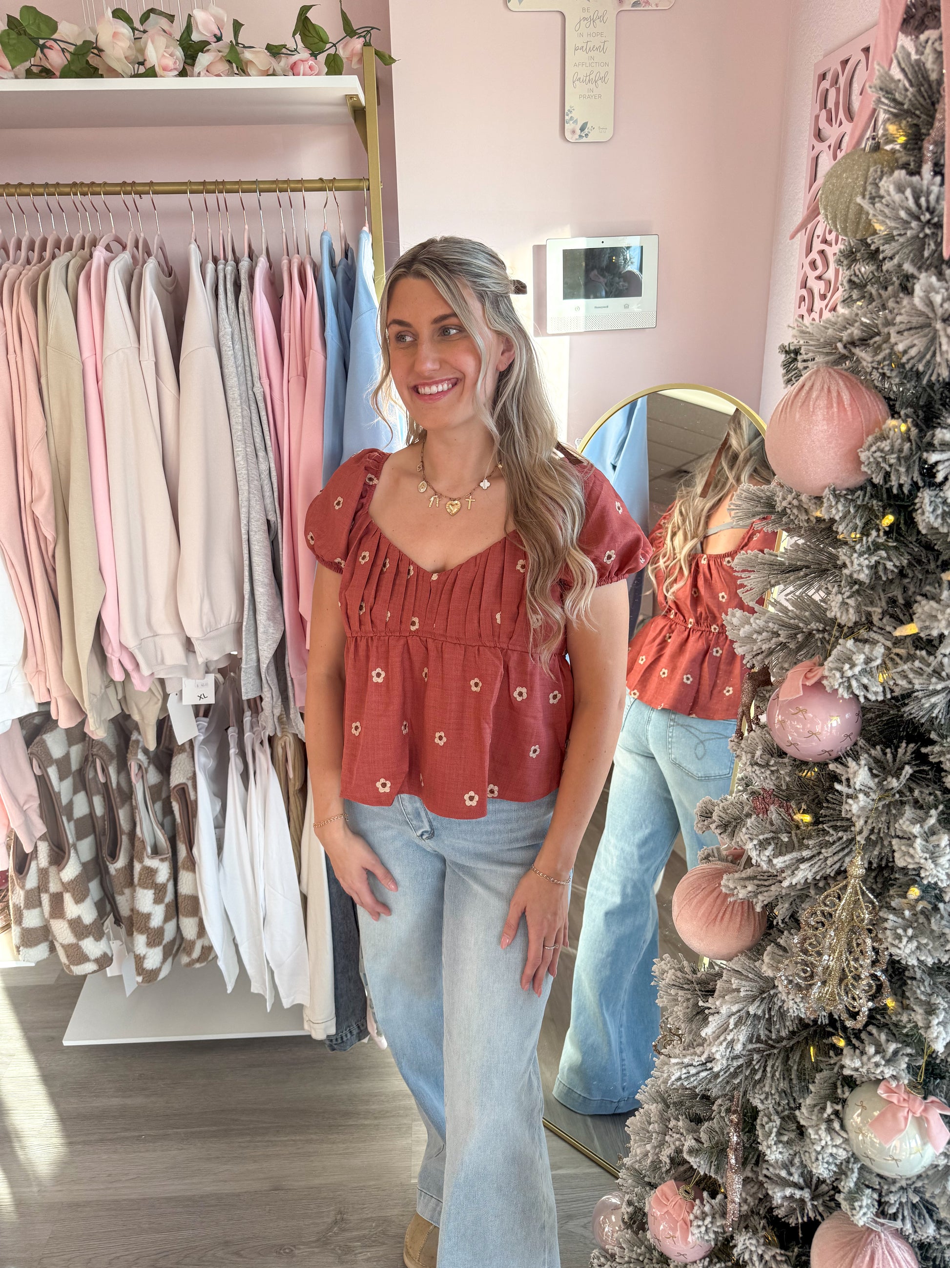 Crimson Floral Babydoll Top